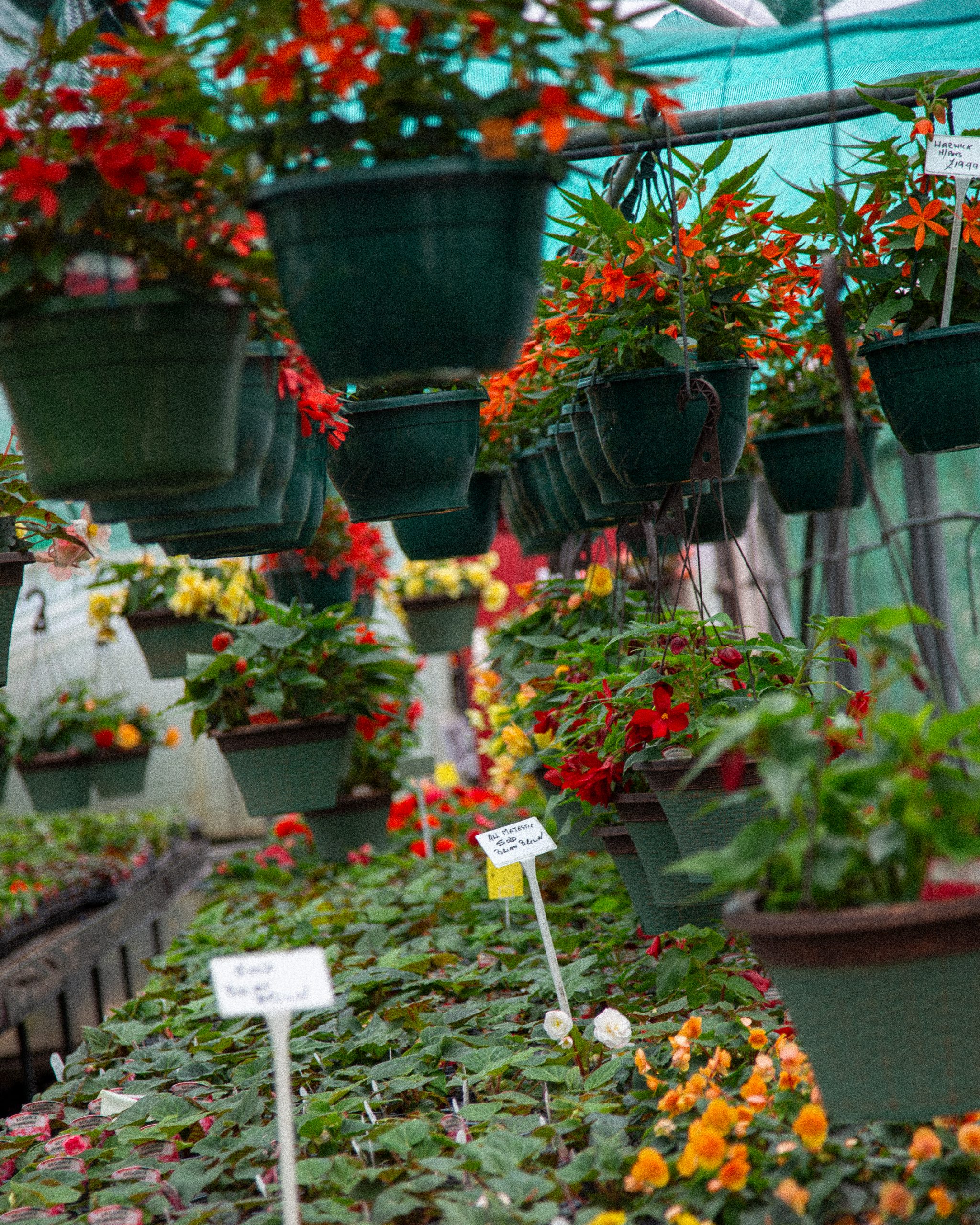 Freshly made hanging baskets